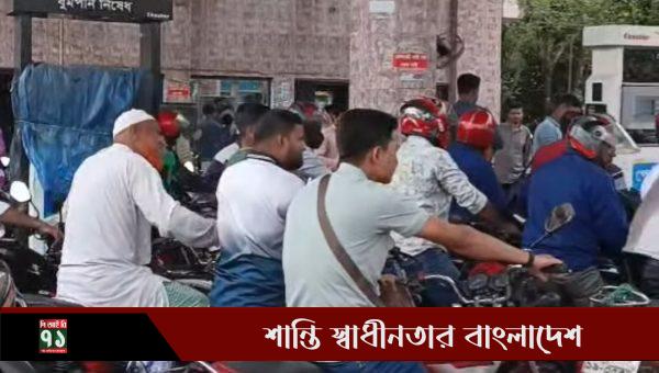 সাধনা তেলের পাম্পসহ উপজেলার বিভিন্ন পাম্পে সরেজমিনে গিয়ে দেখা যায়, পেট্রোল ও অকটেন সংগ্রহের জন্য আলাদা লাইনে শত শত মোটরসাইকেল দাঁড়িয়ে আছে। অনেক চালক অভিযোগ করেন, ৪ থেকে ৫ ঘণ্টা অপেক্ষা করেও তেল পাচ্ছেন না তারা।